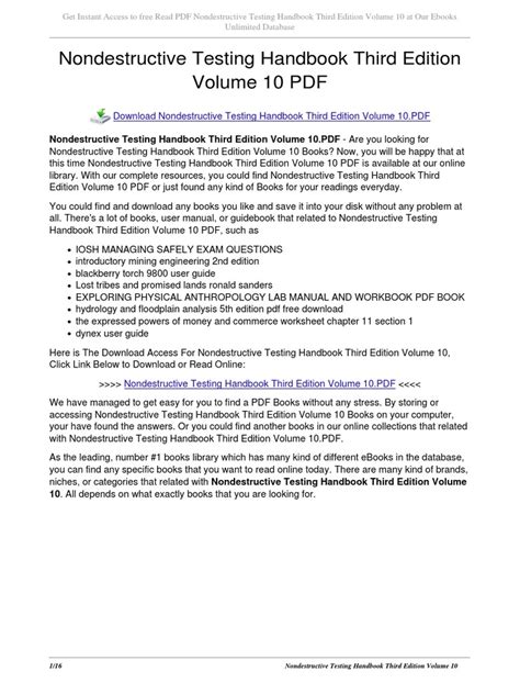 What are you waiting for? Let's get the Nondestructive Testing Handbook Third Edition Volume 10 ebook immediately by pressing the button below. You just need to create a FREE account.